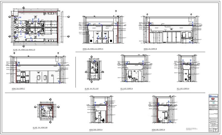 Desarrollo del Proyecto : Plano general que muestra la disposición global del proyecto Plantas Arquitectónicas: Planos de cada nivel, mostrando la distribución de espacios y sus funciones Secciones y Elevaciones: Cortes transversales y vistas para entender la relación entre los diferentes niveles y la forma exterior Detalles Constructivos: Planos detallados de elementos específicos como puertas, ventanas, acabados, etc Modelos y Renderizados: Visualizaciones en 3D y maquetas del proyecto para una mejor comprensión espacial