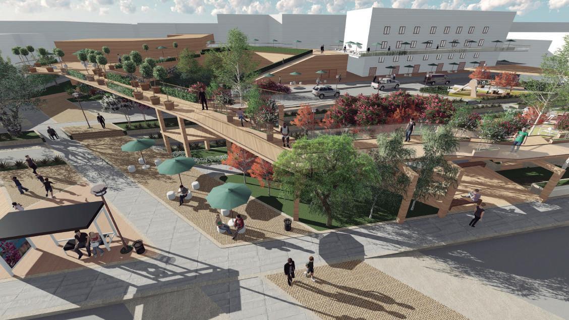 Conectividad de equipamientos mediante un eje ambiental desglozado en plazas