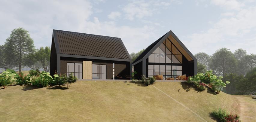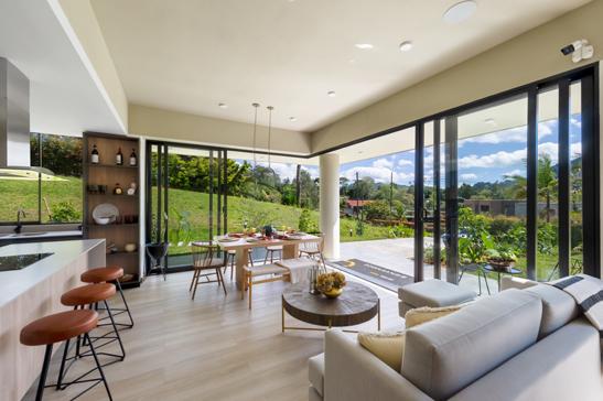 Casa campestre de estilo contemporáneo ubicada en el municipio de La Ceja. Su diseño destaca por techos altos en estructura metálica, abiertos hacia el bosque para maximizar la conexión con el entorno natural. El programa incluye un amplio deck social con área de BBQ integrada a la cocina y un jacuzzi, concebidos como espacios ideales para el disfrute y la relajación en un entorno único.