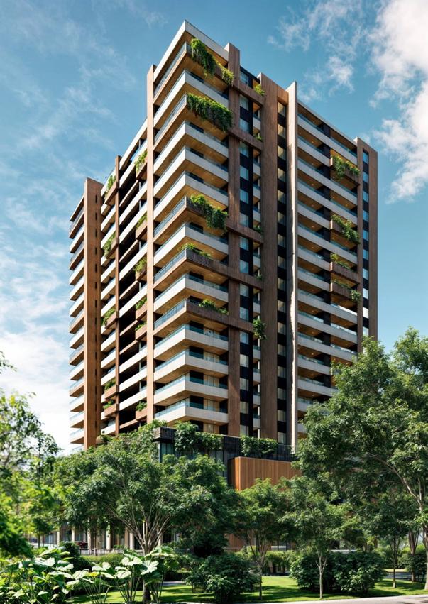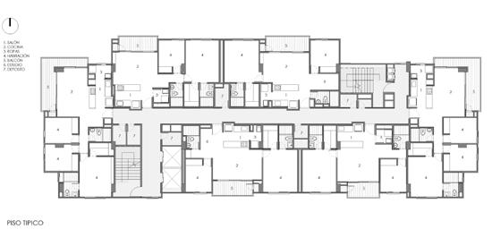 Project of a single tower with studio apartments measuring 41 sqm. The concept of the housing is to have a generous outdoor space in the form of a balcony within the apartment area. This way, some activities of the dwelling can be enjoyed outdoors without the need to leave the house.