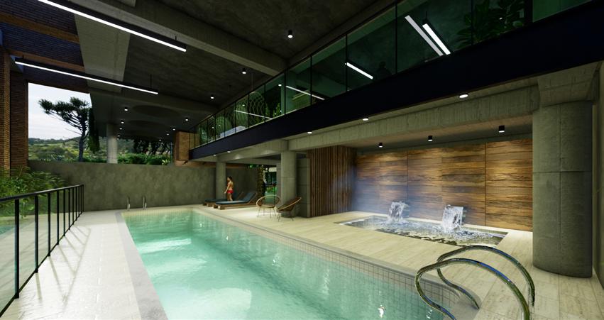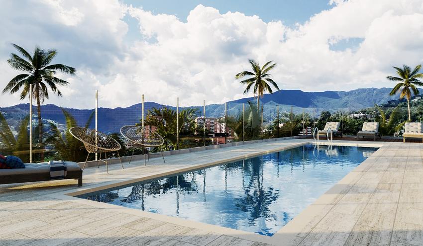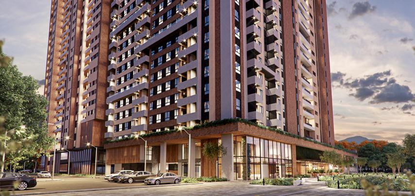It is a mixed-use project located in the municipality of Envigado, consisting of a hotel platform and an exclusive residential tower with 160 apartments. The project is characterized by its spacious balconies and tranquil common areas for the enjoyment of its residents. The floor plan design is based on a square shape with a central atrium-like void, which creates illuminated common corridors where some shared areas are located.