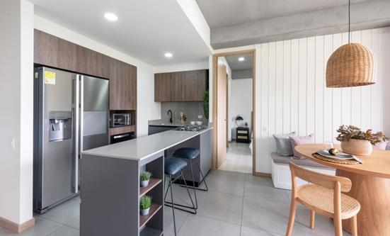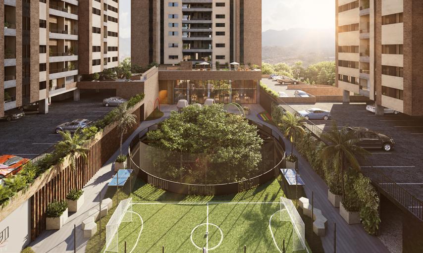 After the pandemic, Celeno emerges as a collective housing project that connects with nature. It is located in the eastern part of Medellín, in a rural area in the municipality of El Retiro. The topography of the land allows some apartments to have patios and terraces, offering a lifestyle more akin to that of a countryside single-family home while still enjoying the advantages of shared common areas.