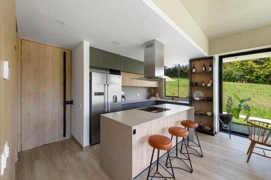 Contemporary-style country house located in the municipality of La Ceja. Its design features high ceilings with a metal structure, opening toward the forest to enhance the connection with the natural surroundings. The program includes a spacious social deck with a BBQ area integrated into the kitchen and a jacuzzi, conceived as ideal spaces for enjoyment and relaxation in a unique setting.