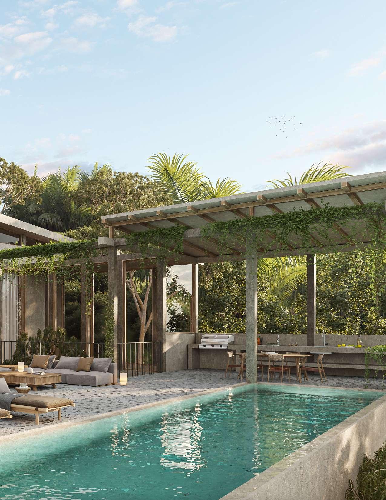 B S COCINA COMEDOR FAMILY ROOM ALBERCA ALBERCA SALA GRILL LOUNGE