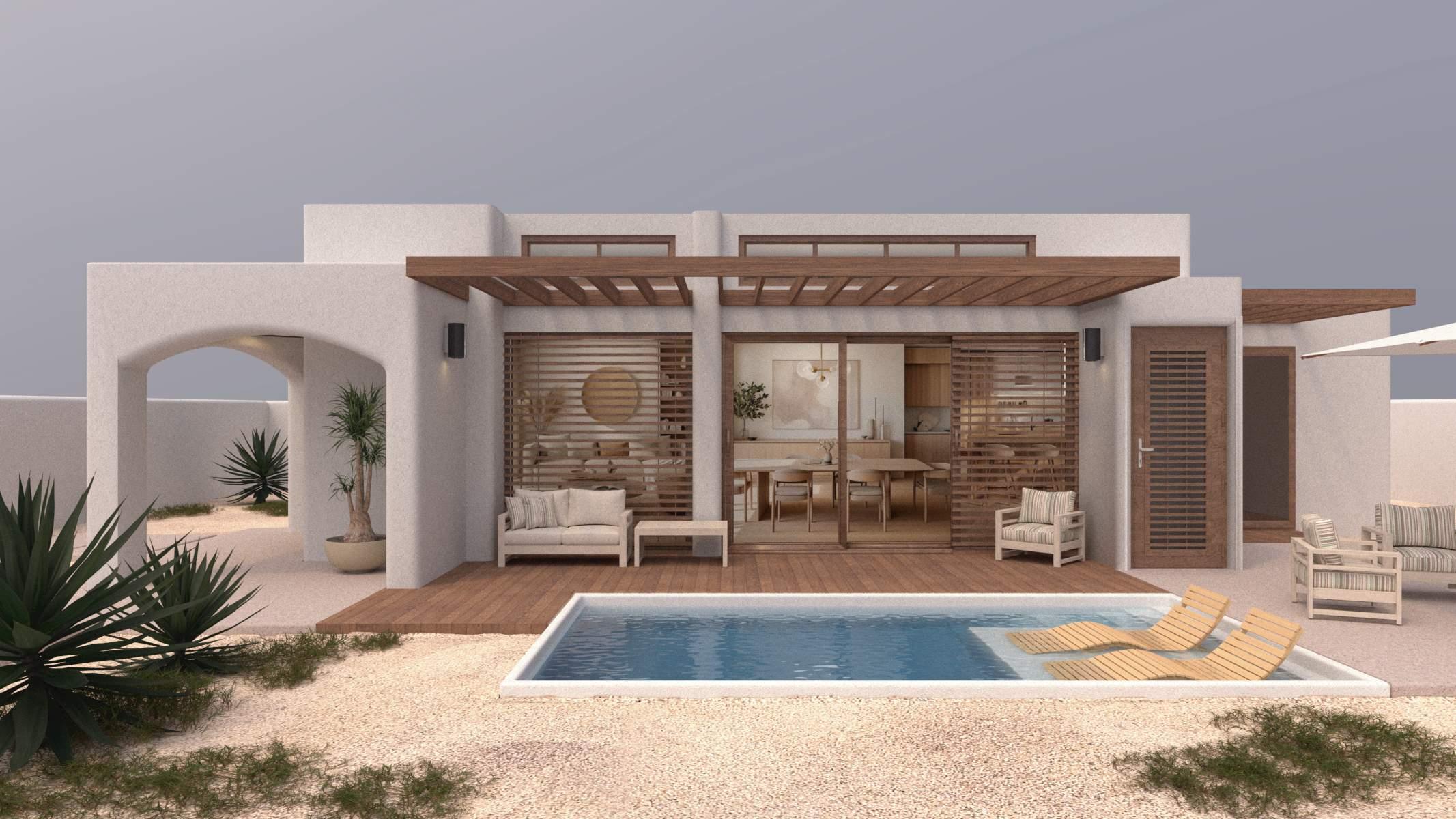 This innovative design proposal aims to blend contemporary elegance with sustainability in the tropical environment of Aruba. The house, with its 60 square meters, is presented as a replicable model that integrates harmoniously with the natural beauty of the island.