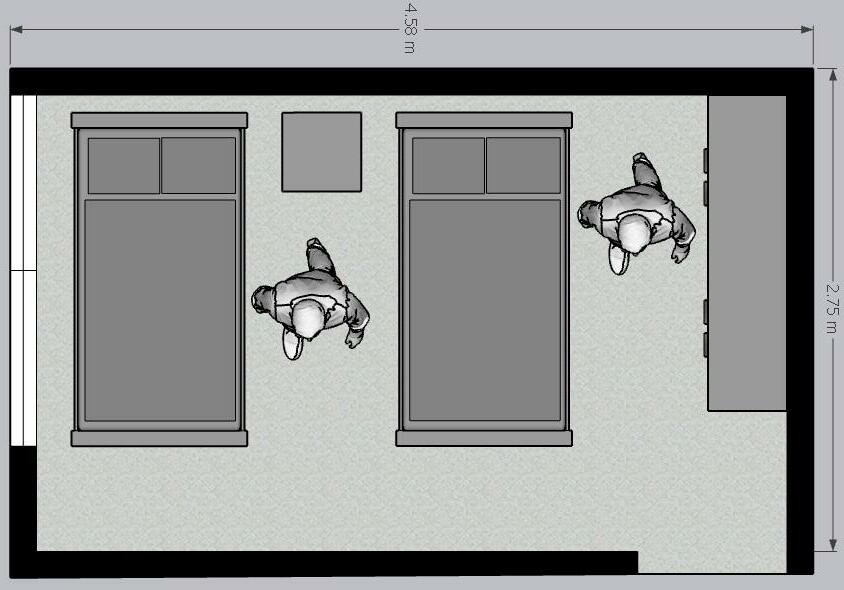 Habitaciones, cuarto de estudio, closet, cuarto de baño.