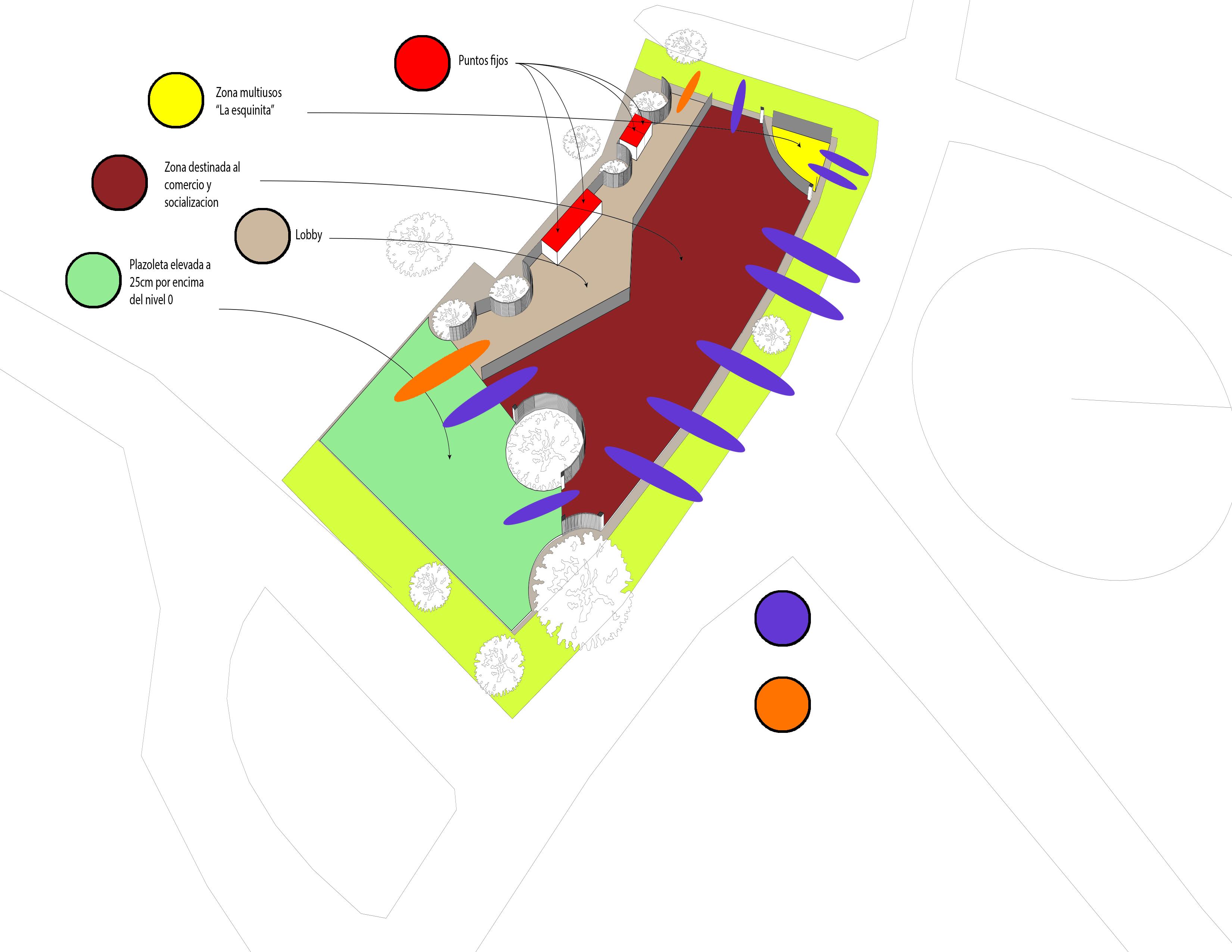 Segundo desarrollo de la zonificacion del primer piso Proyecto escalado Carente de la aplicacion de retiros Conceptualizacion Metodologia utilizada: Color coding