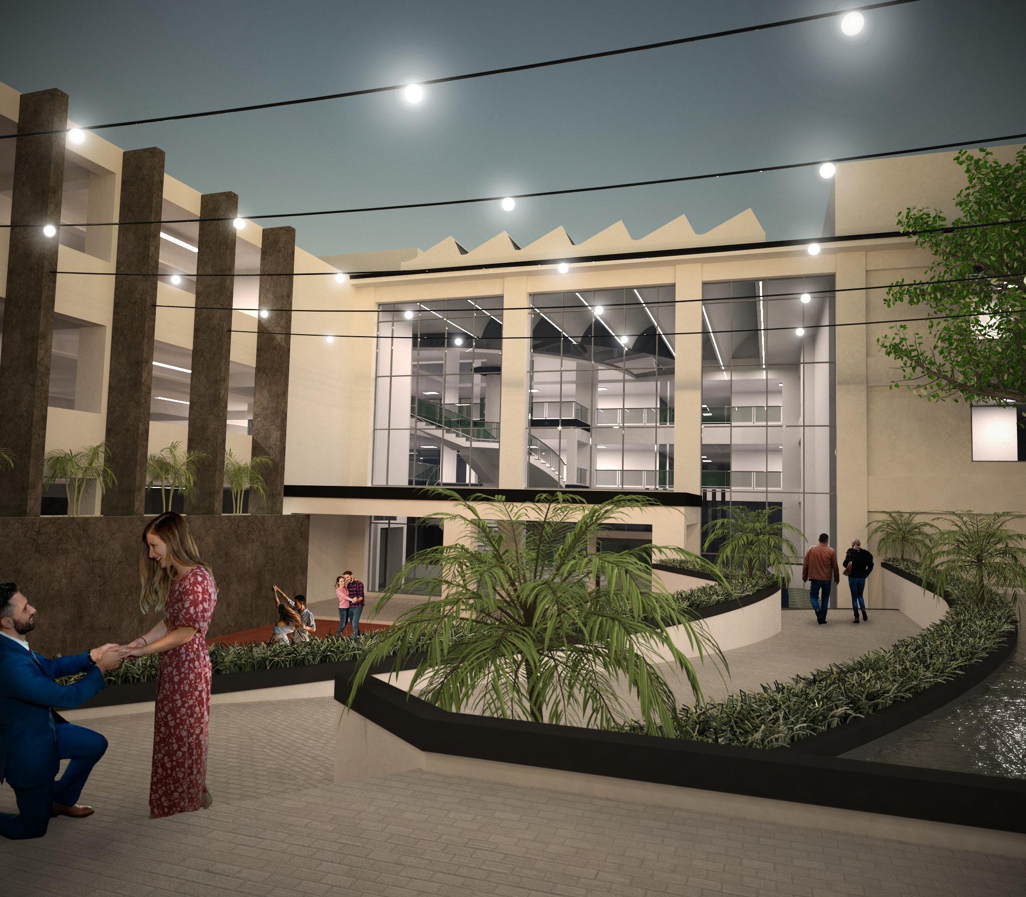 Y para ello se consideraron pasillos exteriores y marquesinas de piso rústico con guías visuales y sensitivas, que recorren por el edificio para acceder fácilmente a estos locales comerciales.