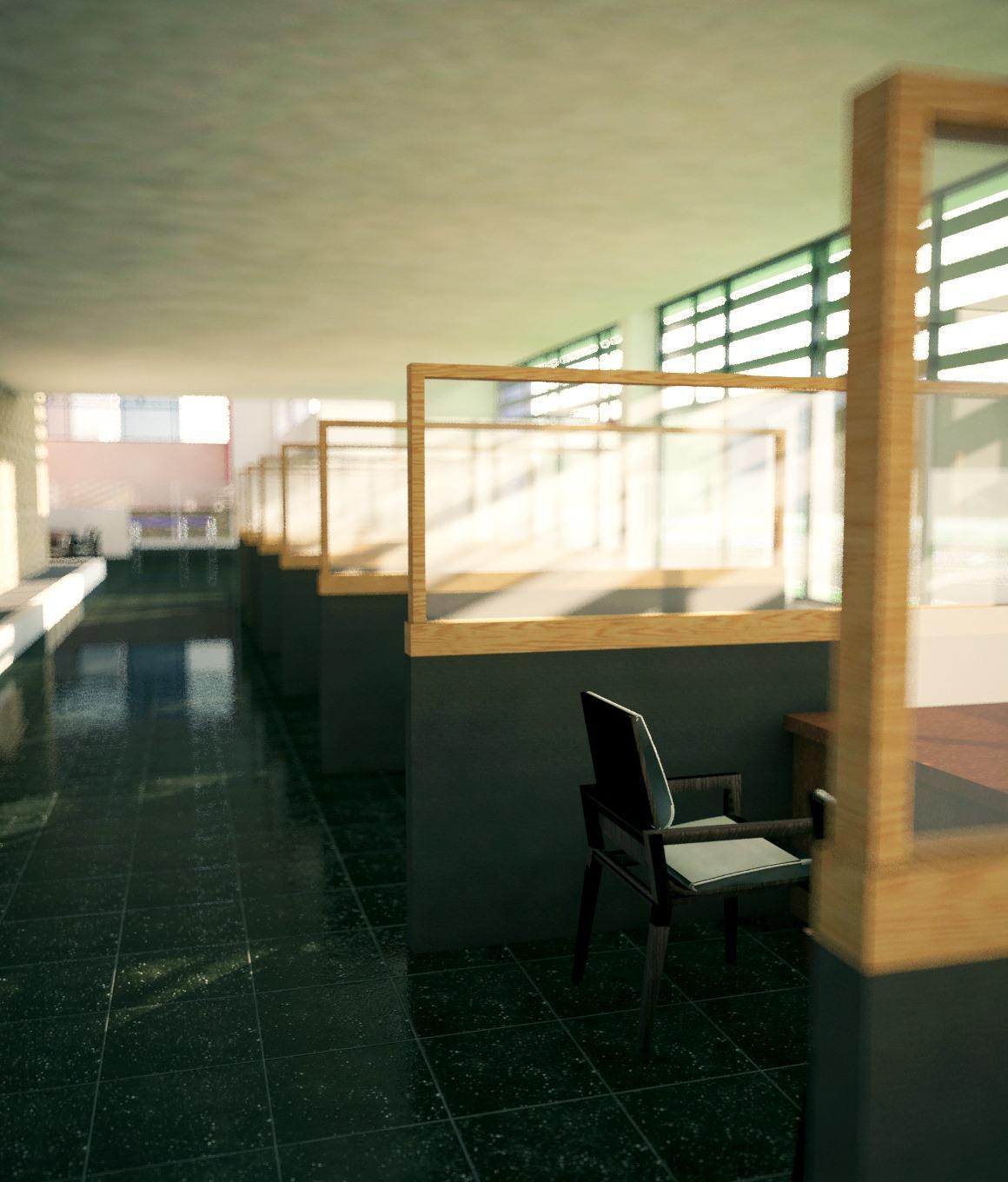 Todas las oficinas se han ubicado en los niveles 100 y 200 del proyecto, para así garantizar mayor seguridad a estos estos espacios y sus pertenencias.
