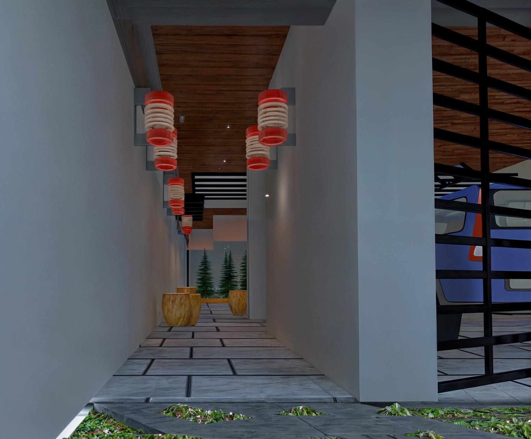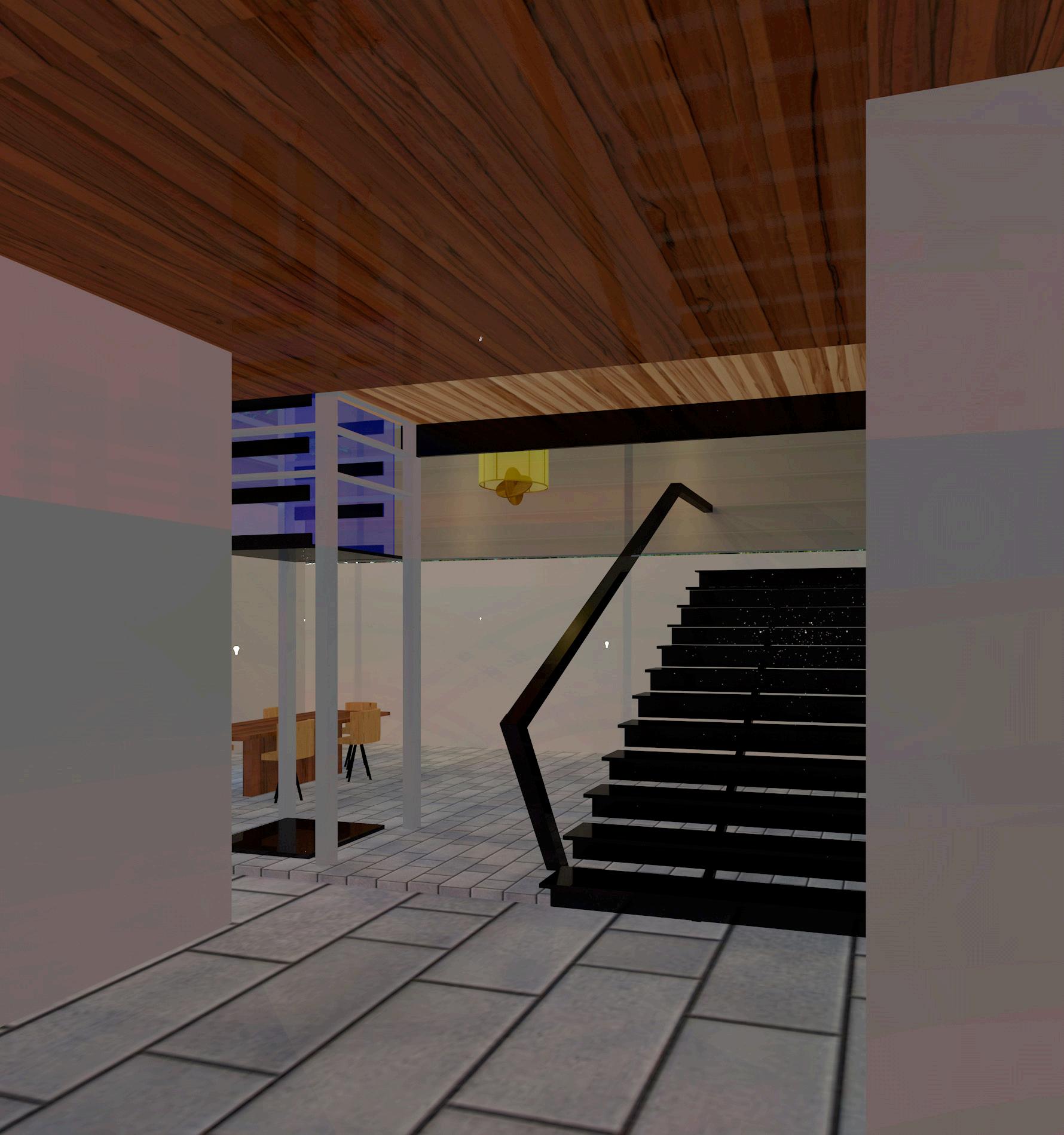 LARGO PASILLO ANEXO AL GARAJE QUE TERMINA EN LOS ESPACIOS SOCIALES Y ESCALERAS Y ASCENSOR.