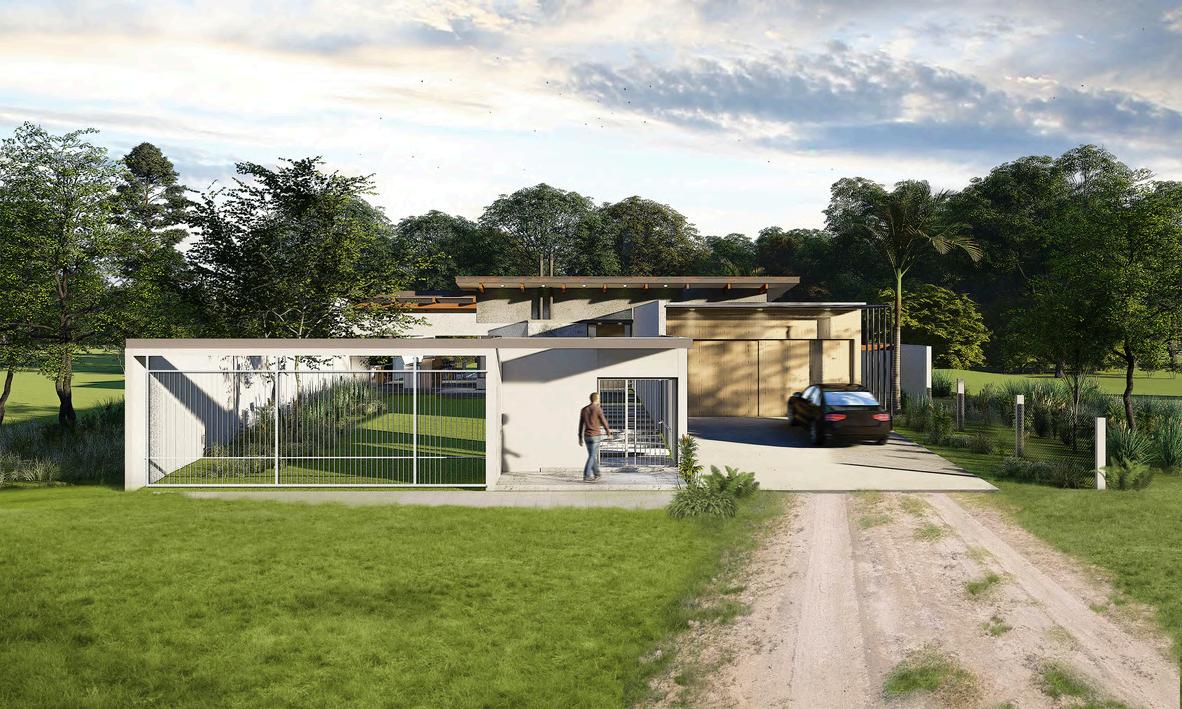Vivienda para una familia amante de los animales, resuelta en 320 m2 de planta baja, aprovechando los 1991 m2 de terreno. Ubicada en una zona rural de la localidad de Leandro N, Alem, Misiones.