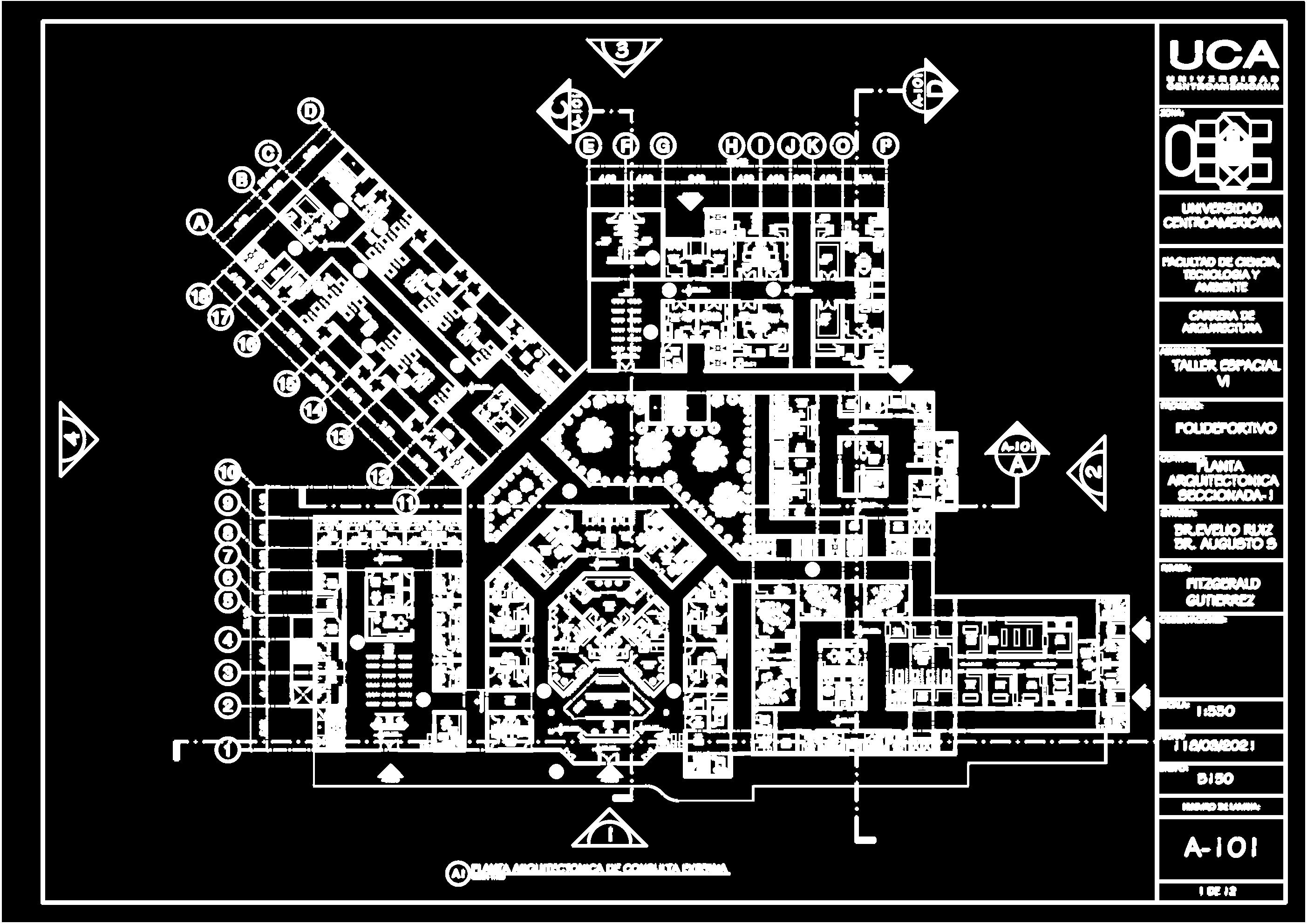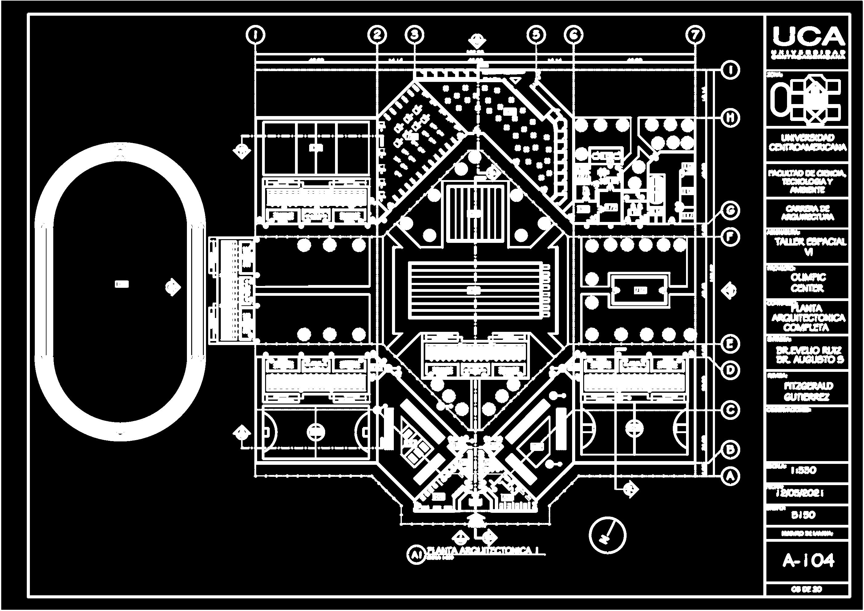 PROYECTO DE TIPOLOGIA POLIDEPORTIVA ESCALA S N ESCALA Polideportivo Olimpic Center CONJUNTO ARQUITECTONICO ESCALA S N ESCALA Area de constuccion: 19,305.07 m² PLANTA ARQUITECTONICA ESCALA S N ESCALA Año de ejecucion de diseño: 2021 Ubicación: Managua-Nicaragua DATOS GENERALES