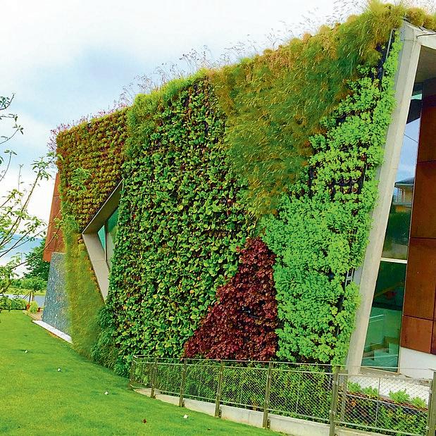 Desde una perspectiva ambiental, estos muros verdes contribuyen a mejorar la calidad del aire alabsorberdióxidodecarbonoyliberaroxígeno, al tiempo que ayudan a bajar las temperaturas ambientales; También actúa como aislante térmico y reduce la necesidad de sistemas de aireacondicionado.