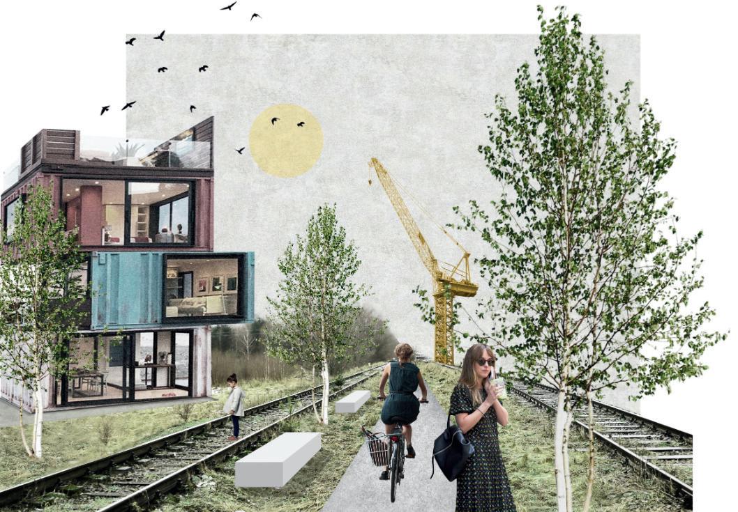En el concepto de diseño de los estudiantes, el término «nexo» no se refiere exclusivamente al área que conecta los módulos de estar y dormitorio. También se refiere a la vinculacióndelsuministrodeenergíay aguaenelentornoresidencial.