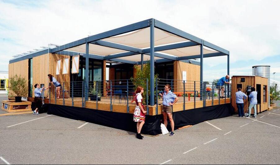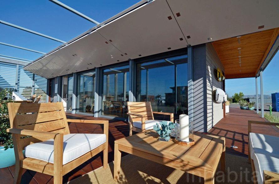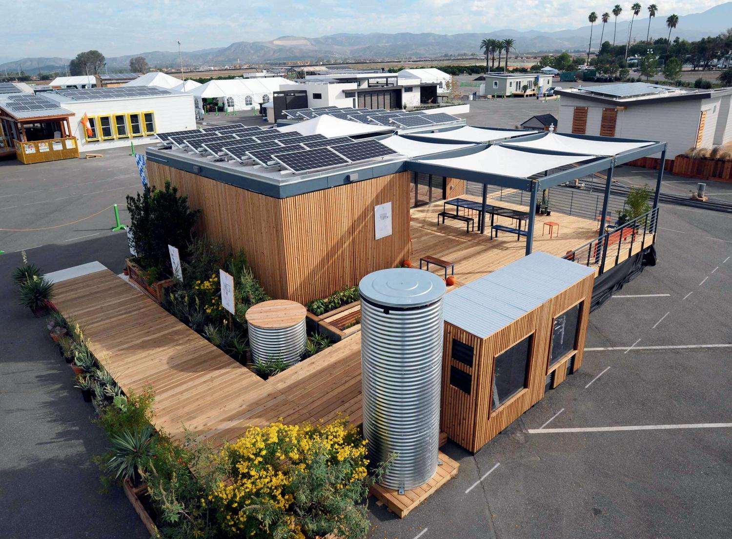 Elprototipoestáfabricadocasiensu totalidad con materiales sostenibles y está equipado con un sistema eficiente de tratamiento de agua y paneles solares en el techo.