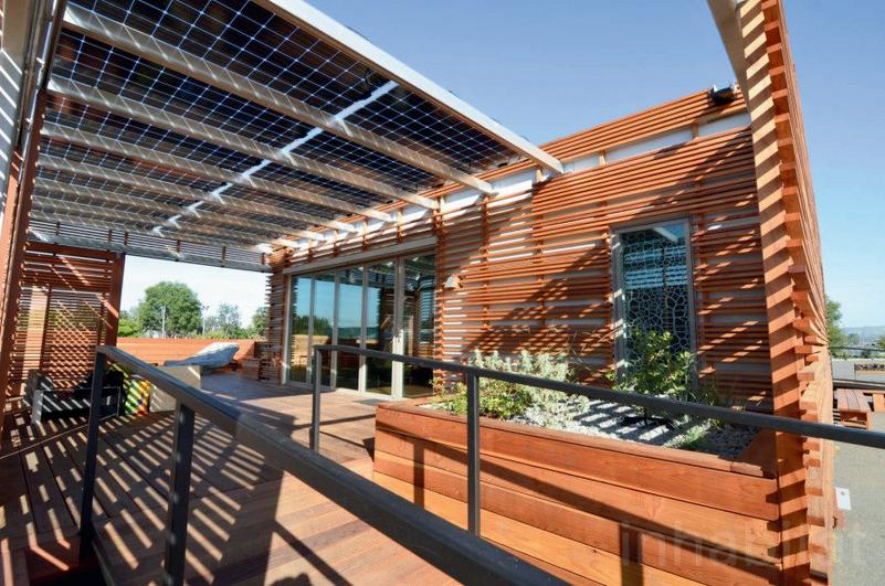 La casa NexusHaus, este proyecto aprovecha de los recusos naturales (energía solar, agua de lluvia y agua auxiliar) teniendo en consideracion su ubicacionyclimapara volverse eficiente. De modo que la casa está cubierta con paneles solares, que generan toda la energía necesaria para su abastecimiento.