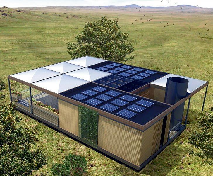 La casa está cubierta con paneles solares, que generan toda la energía necesaria para su abastecimiento, incluyendo la iluminación, electrodomésticos, electrónica, aire acondicionadoyuncocheeléctrico.