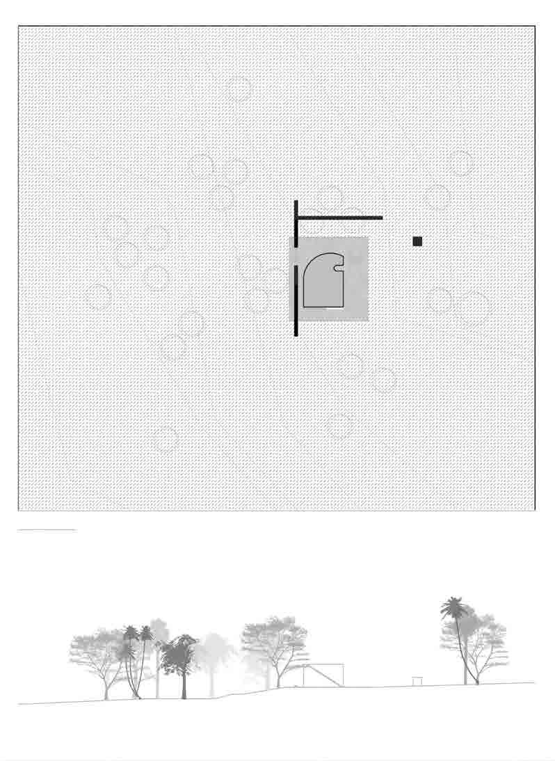 Existe uma subtração de natureza orgânica na elevação norte, para que atribua uma sensação de acolhimento ao espaço ao mesmo tempo que melhora a acústica no altar.