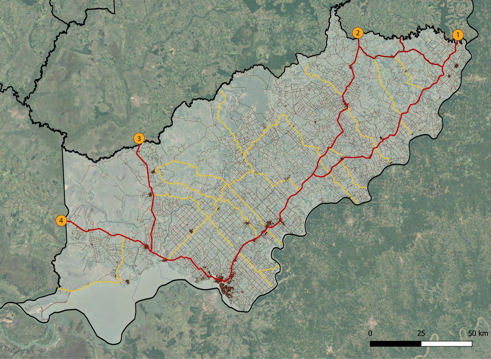 El tercer (3) eje se analiza el uso que se le da al suelo y las actividades que se llevan a cabo en cada departa mento, por lo que cabe destacar, que existe una predominancia del uso agropecuario en la zona. Por otra parte, un estudio sobre cómo se articula la infraestructura vial, la movilidad, y la influencia que tiene la dinámica fron teriza, aporta un mejor panorama sobre la economía del departamento, además de interiorizar sobre las norma tivas vigentes del ordenamiento territorial y los avances actuales que se dan en ella.