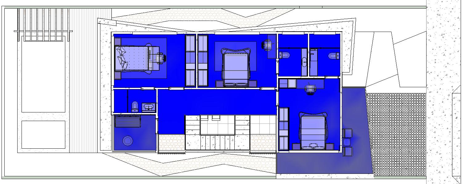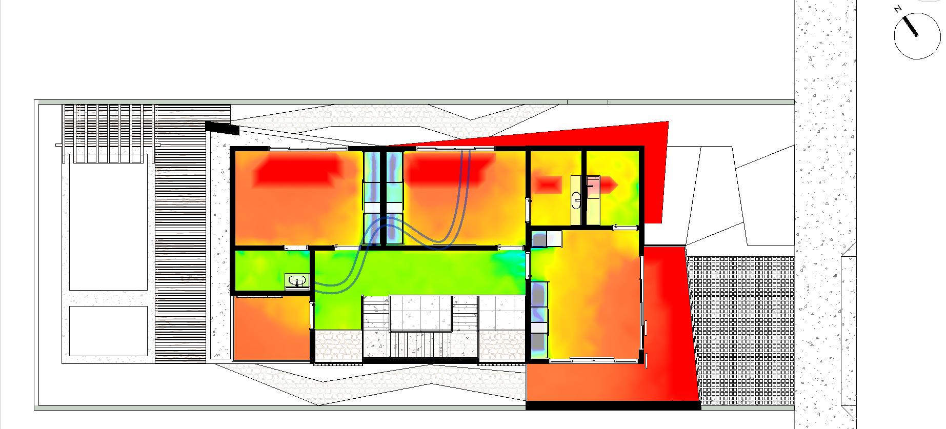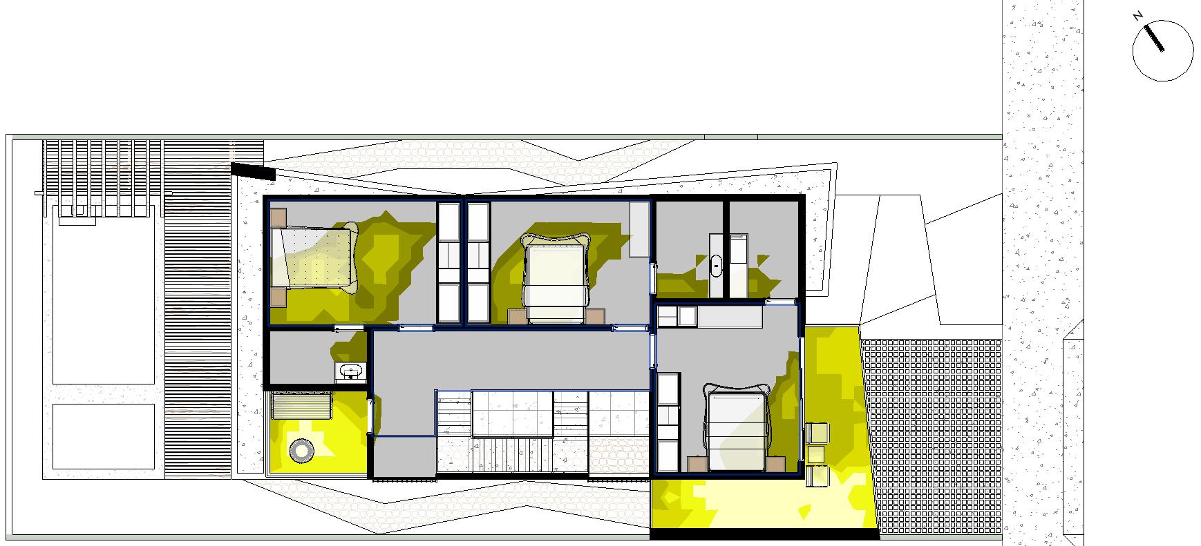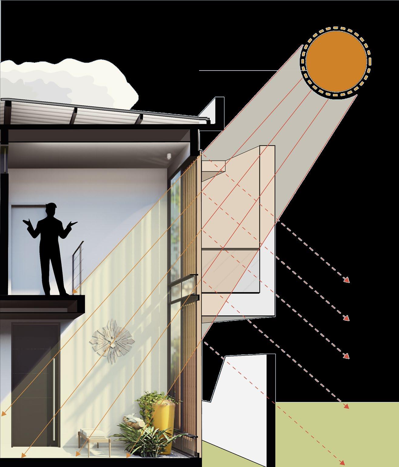Projetamos os ambientes principais, como salas e quartos, para que a luz do sol entre e realize seu efeito bactericida, As janelas são posicionadas para permitir o cruzamento da ventilação natural, trazendo mais conforto térmico aos ambientes.