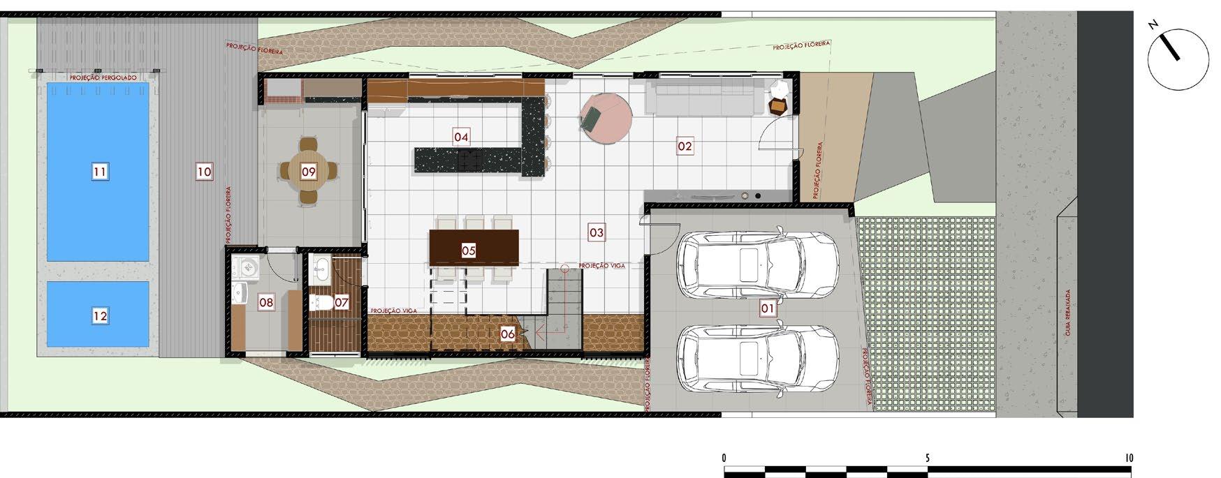 A vida nas cidades costuma ser corrida e sem tempo para muita coisa. Mas, recentemente passamos até a trabalhar em casa. Então, para equilibrar as demandas de uma vida urbana, projetamos uma casa que abriga as necessidades e sonhos de uma família, além de cuidados extras com a qualidade de vida, criamos a Casa Novus, para um terreno com 250 m². Áreas de conhecimento como a neuroarquitetura, biofilia, psicologia das cores, desenho universal, conforto e sustentabilidade ambiental nos inspiram em nossos projetos.