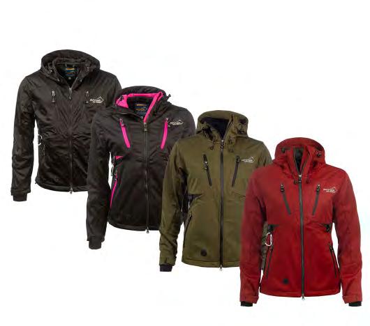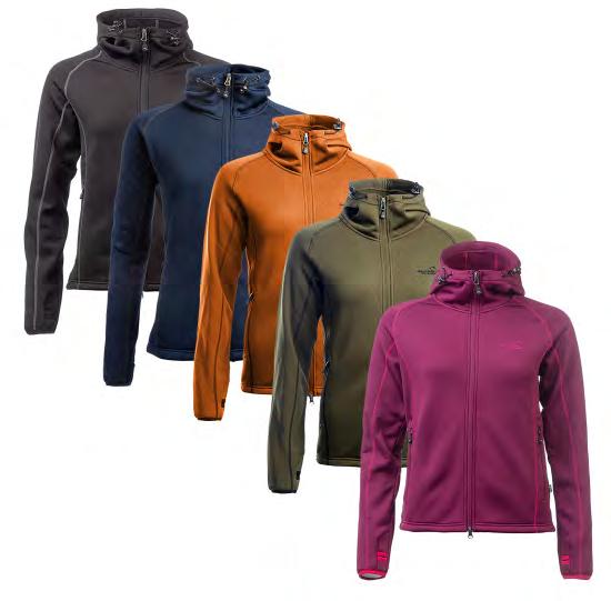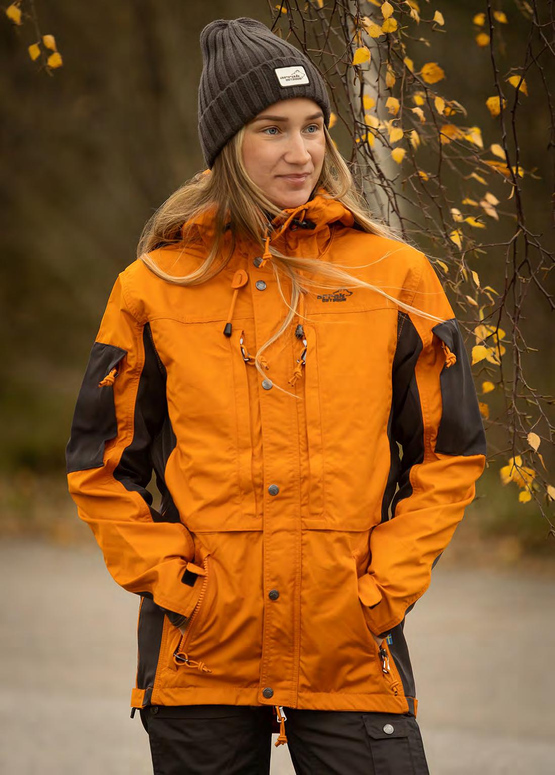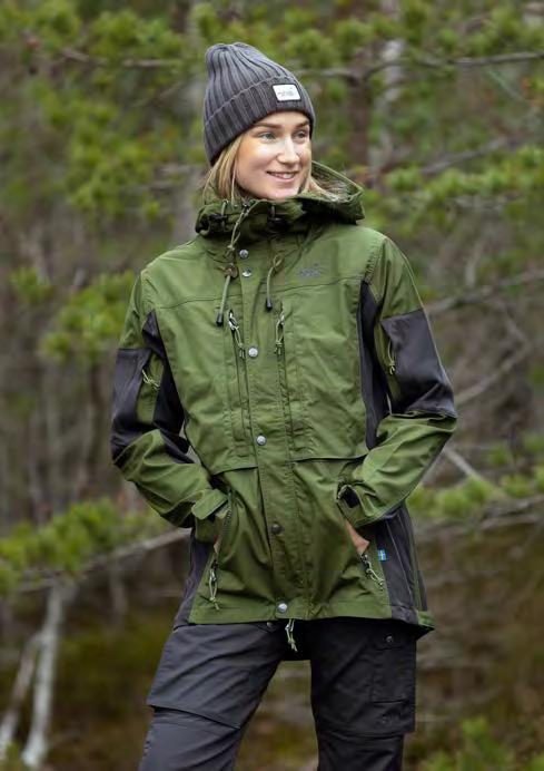 Ventilation zippers under the armholes. Several substantial front pockets. Mobile phone pocket inside left breast pocket. Adjustable Velcro ends in the sleeves. Pocket on sleeve and a practical back pocket. Adjustable hood. The women’s model is slightly folded in at the waist.