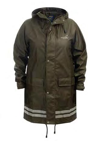 A classic raincoat. Flexible material of PU coated Polyester. Longer model that keeps you dry in all weathers.