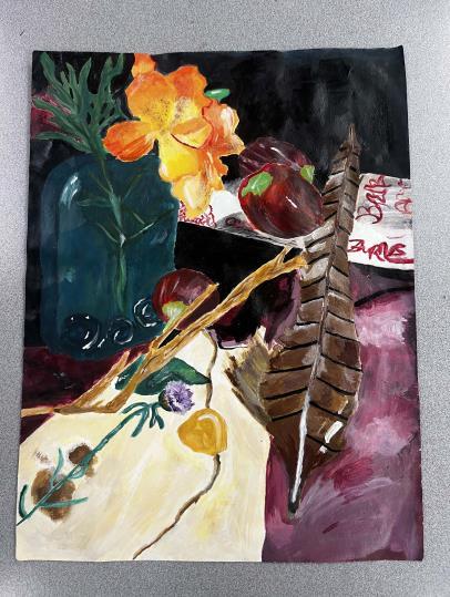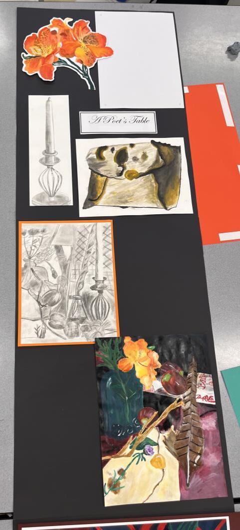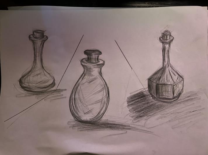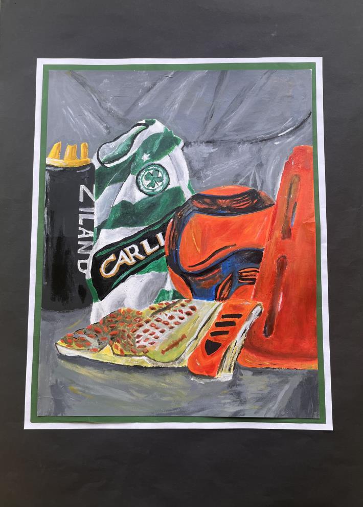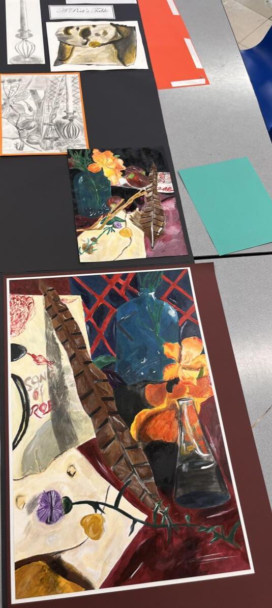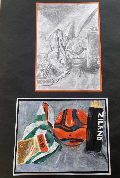 National 5, developments, Tonal pencil still life, Acrylic paint still life.