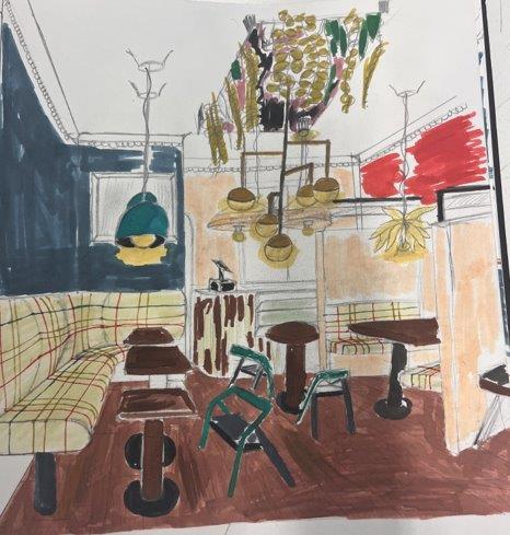 Auto CAD layout of my café projects interior, to scale.