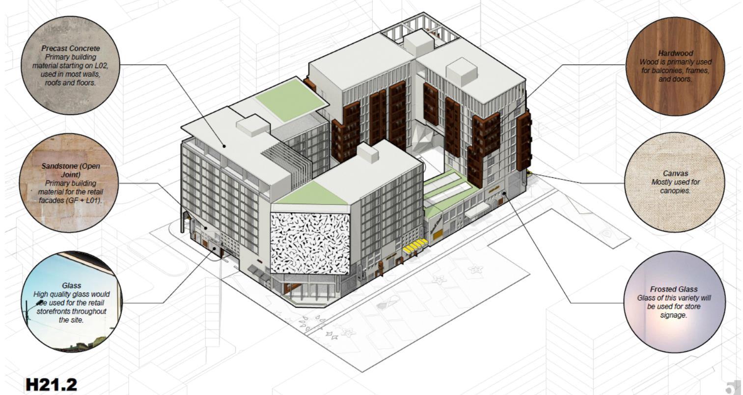 LEVEL -1 PLAN LEVEL 0 PLAN LEVEL 1 PLAN RESIDENTIAL LEVELS PLAN REAR ELEVATION H21.1 FACADE MATERIAL PROPOSAL AERIAL VIEW OF THE SITE PART SITE PLAN H21.1 PEDESTRIAN WALKWAY MAIN STREET WEDIYAN WALK Work folio : Ar. Abdul razzaq