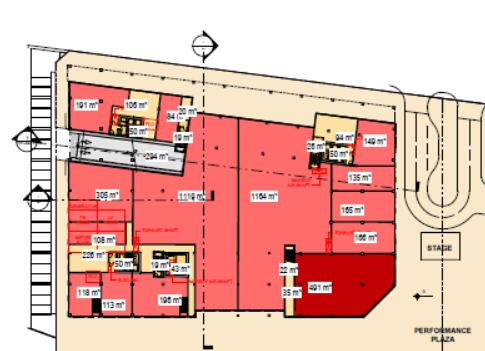 The retail services on the island include F&B, Edutainment, Entertainment, in addition to the market. 7427SQM = Gross Floor Area