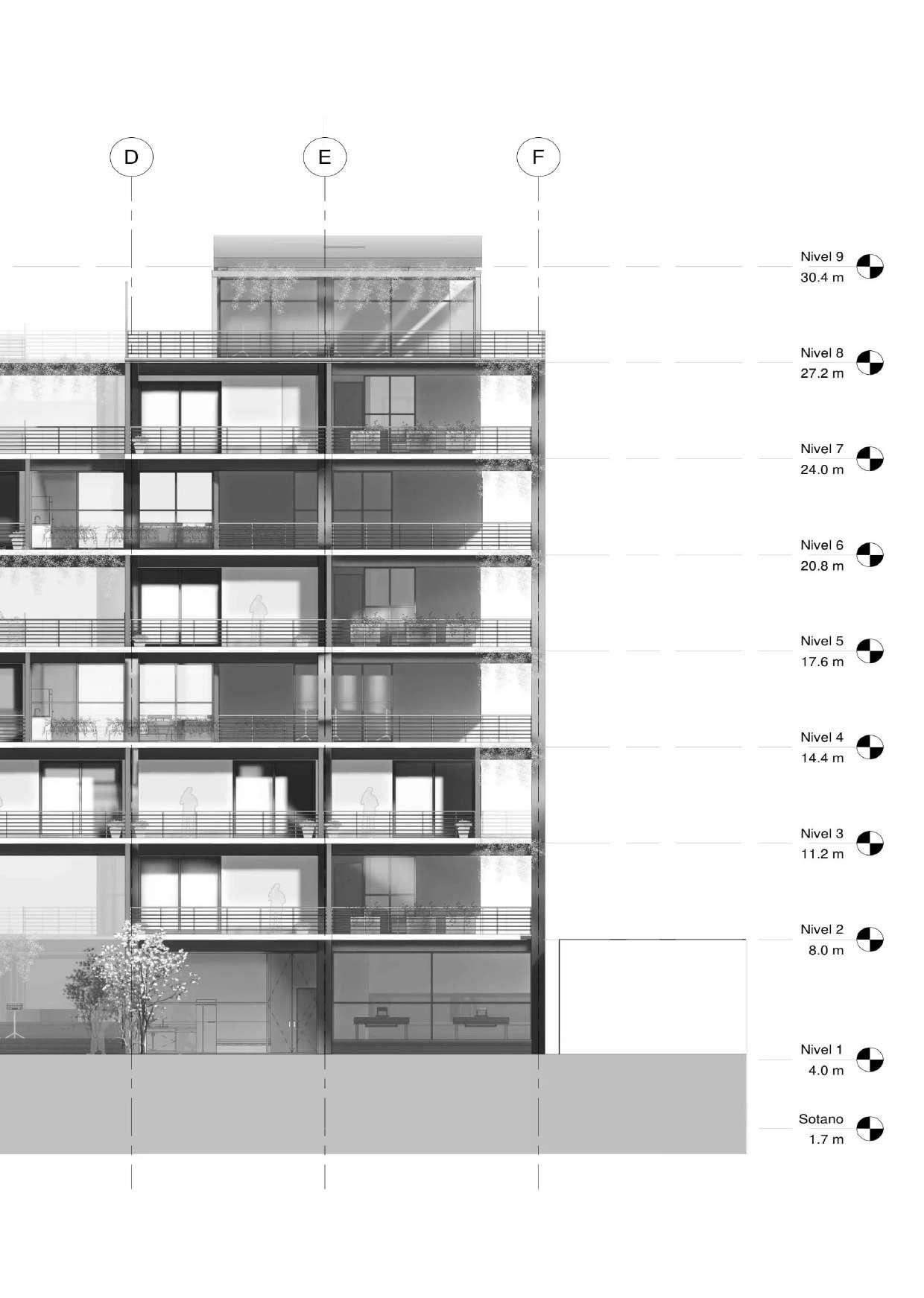 FIG 55: Sección urbana del proyecto, elaboración propia.