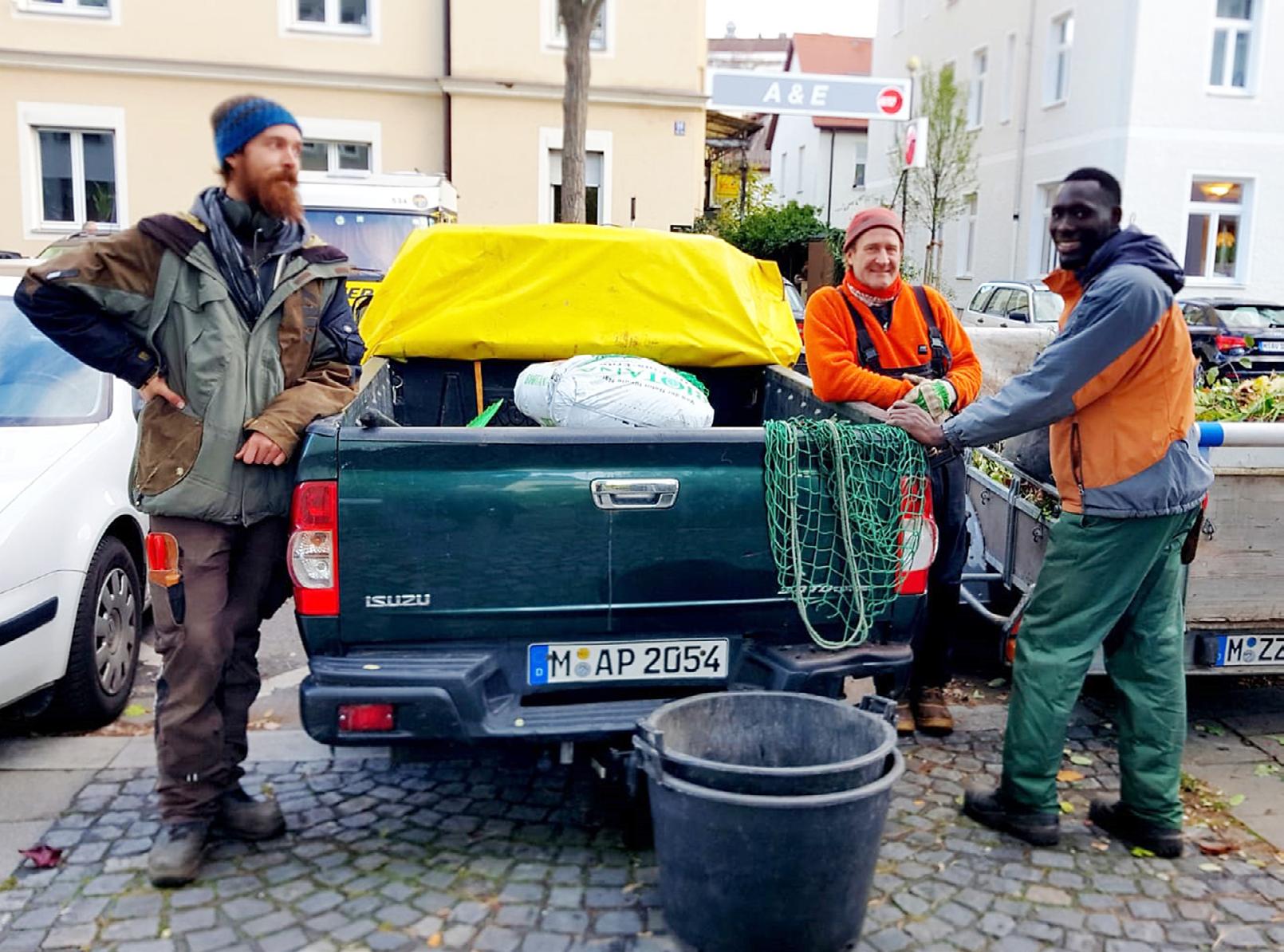 „Eine deutsche Freundin von mir ist Jobmentorin für Geflüchtete bei der Organisation ArrivalAid. Sie heißt Corinna Lambernd“, berichtet Sam Diatara. „Sie hat mir von der Ausbildung zum Landschaftsgärtner erzählt. Wir haben uns zusammen das Informationsvideo über diesen Beruf angeschaut. Die Arbeit im Garten- und Landschaftsbau ist sehr vielseitig. Außerdem ist man immer draußen. Ich habe früher in Griechenland in der Landwirtschaft gearbeitet. Deshalb dachte ich, der Garten- und Landschaftsbau passt zu mir.“ Jobmentorin Corinna Lambernd hat Sam mit dem Lebenslauf und dem Anschreiben geholfen. Dann haben sie die Willkommenslotsin Susann Liebe kontaktiert. Susann Liebe arbeitet bei dem Verband Garten-, Landschafts- und Sportplatzbau Bayern e. V. (kurz: GaLaBau). Ihre Stelle wird vom Bundeswirtschaftsministerium gefördert. Sie hilft Menschen mit Fluchthintergrund, eine Arbeit oder Ausbildung im Garten- und Landschafts-