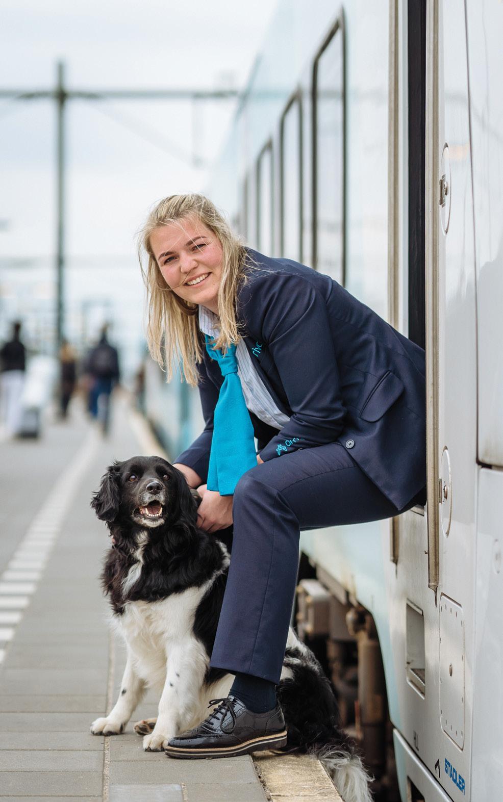 Ze rijdt al bijna zes jaar voor Arriva. In een ander leven had ze misschien achter een hondentafel gezeten, als dierenartsassistente. Of in een fabriek, zoals ze ook echt even deed. Maar het werd de trein. Een rijdend kantoor, noemt ze het. ‘En dan wel met het mooiste uitzicht van de wereld.’