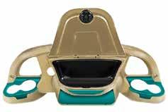 ■ Seat bottom flips open to provide a flat working area and access to underneath storage bin (sold separately).