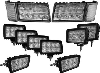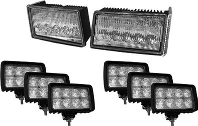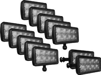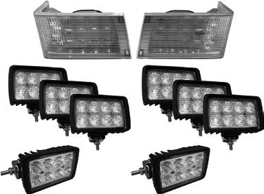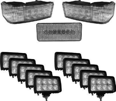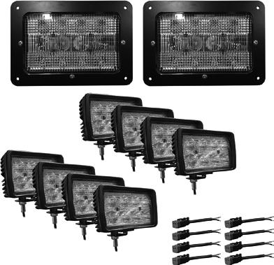 • Includes TL7210L left LED work light, TL7210R right LED work light, 2 TL6700 LED headlights, 6 TL8400 LED work lights with ball mounts, 4 RE306510 upper cab work lights