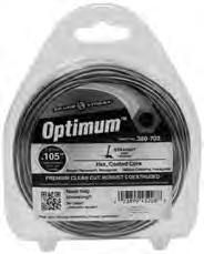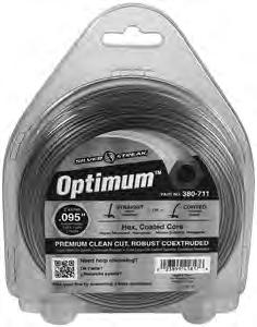 OptimumTM trimmer line provides 6 cutting edges, allowing more material mass for long wear and delivers a clean shear cut for less browning of grass tips. Quick and efficient cutting in more tall, thick and heavy weed conditions.