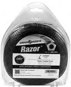 RazorTM trimmer line provides 5 cutting edges, allowing more material mass for long wear and delivers a clean shear cut for less browning of grass tips. With this line, you get improved fuel efficiency, reduced noise levels and trimmer vibrations. Delivers the most professional looking results.