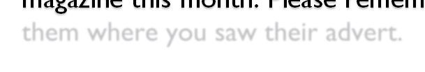 We have a few new advertisers in the magazine this month. Please remember to tell them where you saw their advert.