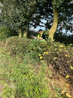 Sunshine and blue skies greeted us on 6th September for our Work Party. Our Ranger Sam joined 14 volunteers who split into groups and got started on their tasks. The trees in Vulcan Copse were mulched and the long grass around them trimmed; the hedges at Carrot Corner had a good trim and tidy up and both sides of the zip wire path were cleared of overgrown brambles. Other jobs included varnishing the newly repaired Covid Memorial bench, cutting back near the car park, and spreading grass seed near the picnic table. The litter picking team did a great job as always, collecting 2 large bags of rubbish. Afterwards, we all enjoyed refreshments with Julie and Debra’s delicious cakes and blackberry & apple crumble with blackberries picked from the park. Excellent work as always from an awesome team.