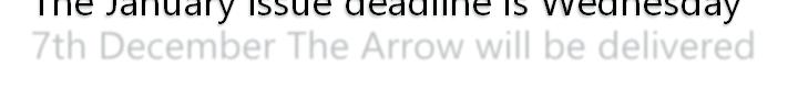 The January issue deadline is Wednesday 7th December The Arrow will be delivered before 1st January.