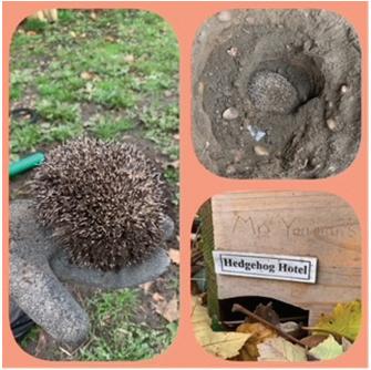 Since opening the outside classroom we have had so many different types of bird visit our bird feeders, but this week we had our very first guest into our hedgehog hotel. After discovering this small, cheeky, spikey mammal in a hole which had been dug for our new playground, we carefully moved him into the luxury accommodation for the evening while he regained his strength. Thankfully he recovered well and made his way back into his natural environment all by himself.