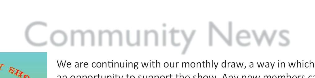We are con nuing with our monthly draw, a way in which everyone has an opportunity to support the show. Any new members can apply on line through our website. www.auckley.show.co.uk or give me a call to arrange 01302 770818.