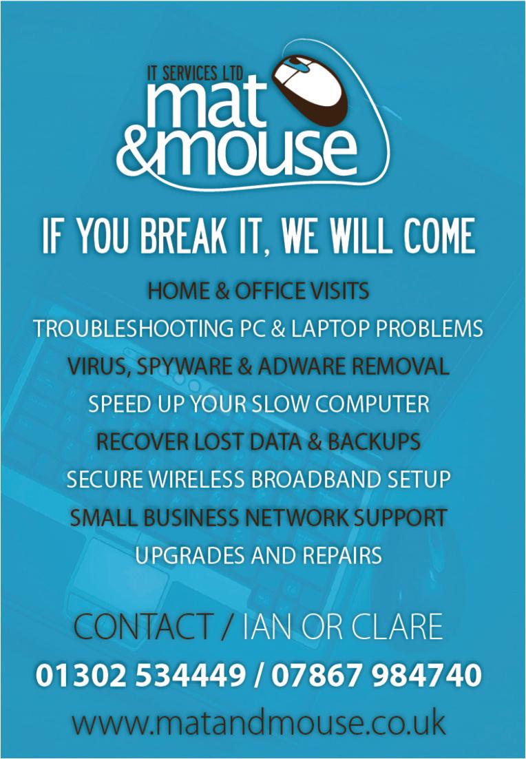 2nd Saturday in the month Saturday Help, Advice & Signpost surgery Finningley Village hall 10—11am 01302 771727 01302 285639