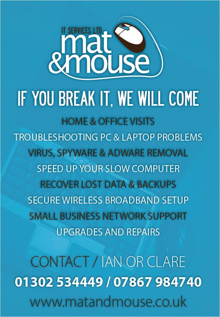 Cantley Community Library will hold our annual Christmas Fayre on Saturday 7th December between 9.30 and 12.00. All are welcome and there will be Refreshments, Tombola, Raffle, Guess the weight of the cake, Jigsaw Sale, Knit & Na er stall and much more. We will be joined by The Tickhill Male Voice Choir who will contribute to the fes ve ac vi es with Carols. So do come and have a family morning out, get some stocking fillers from the stalls and support your local community library.