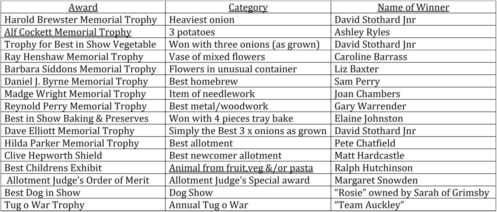 Air Cadets for their amazing car parking skills. ‘Behind the Scene Helpers’ – programme distributors, toilet maintenance workers, electricians, stall holders, tombola helpers, raffle ticket sellers, exhibit tent judges and assistants, AND all who help to assemble and dismantle the Show’s infrastructure. Last, but not least, the Show Committee who meet regularly to organise the various aspects of the Show. AND anyone else I may have inadvertently forgotten…..THANK YOU.