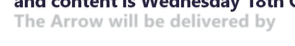 The November issue deadline for adverts and content is Wednesday 18th October. The Arrow will be delivered by 1st November.