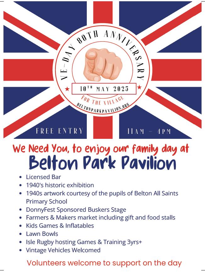 Belton Park Pavilion, in collaboration with Belton Parish Council are holding a spectacular VE Day 80th Anniversary celebration on Saturday May 10th.