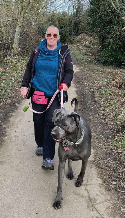 Jacquie will sometimes be accompanied on her training by her dogs, 13-year-old Polly the pug and Mavis – a cross between a Great Dane and a Mastiff.