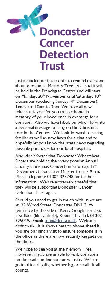 For further information, please contact Elaine on 07930 368867 or Jackie on 01302 344822